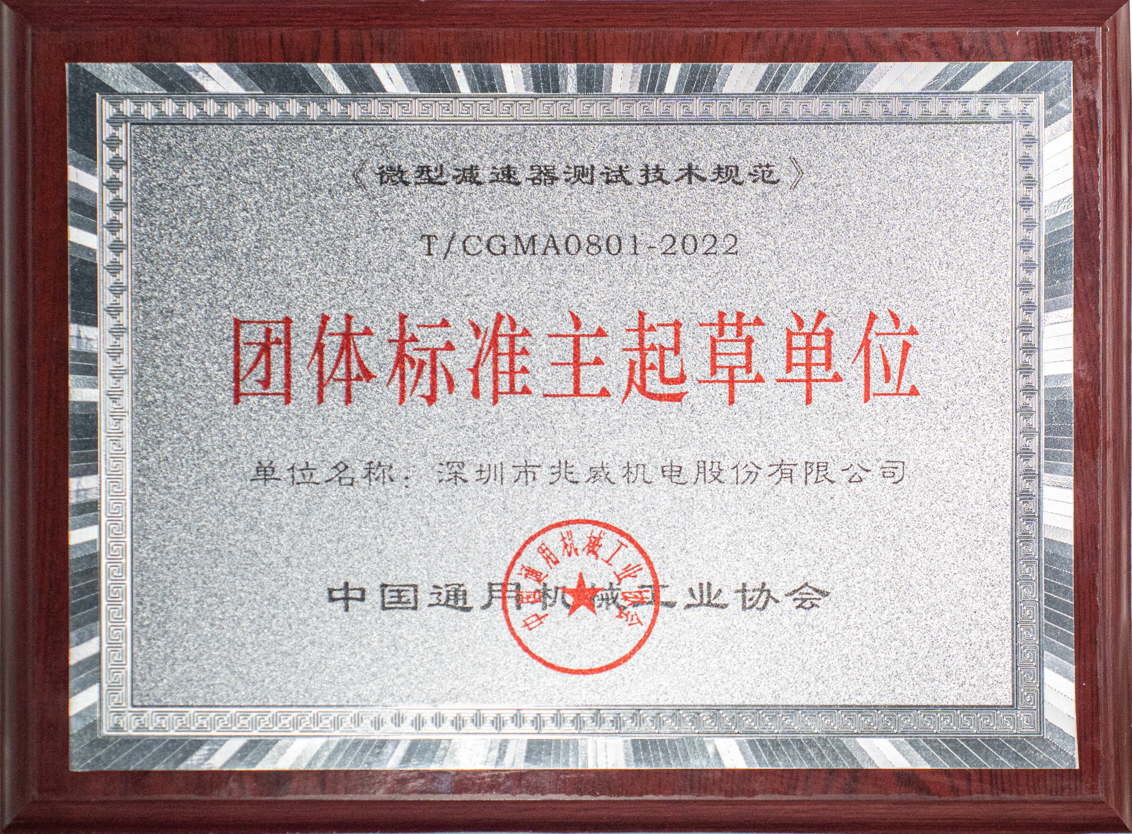 本次,hjc黄金城官网机电参加制定的标准为“微型减速器测试技术规范T/CGMA0801-2022”帮助推动行业技术进步,确保产品质量和安全性。而此“团体标准主起草单位”荣誉无疑是对公司长期以来在通用机械领域持续创新和卓越贡献的高度认可。